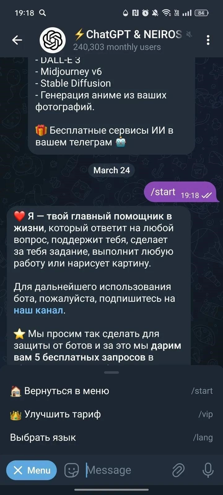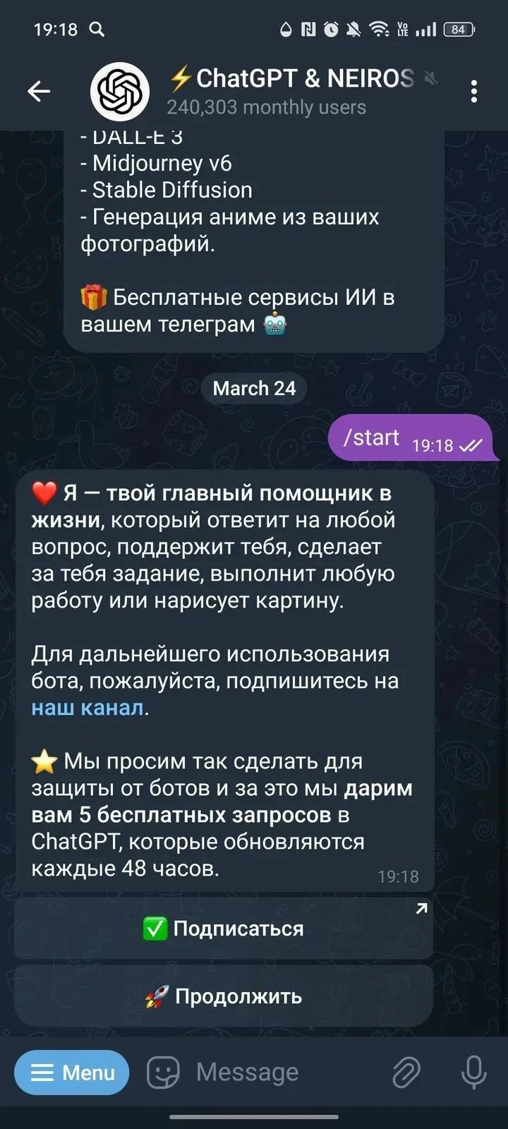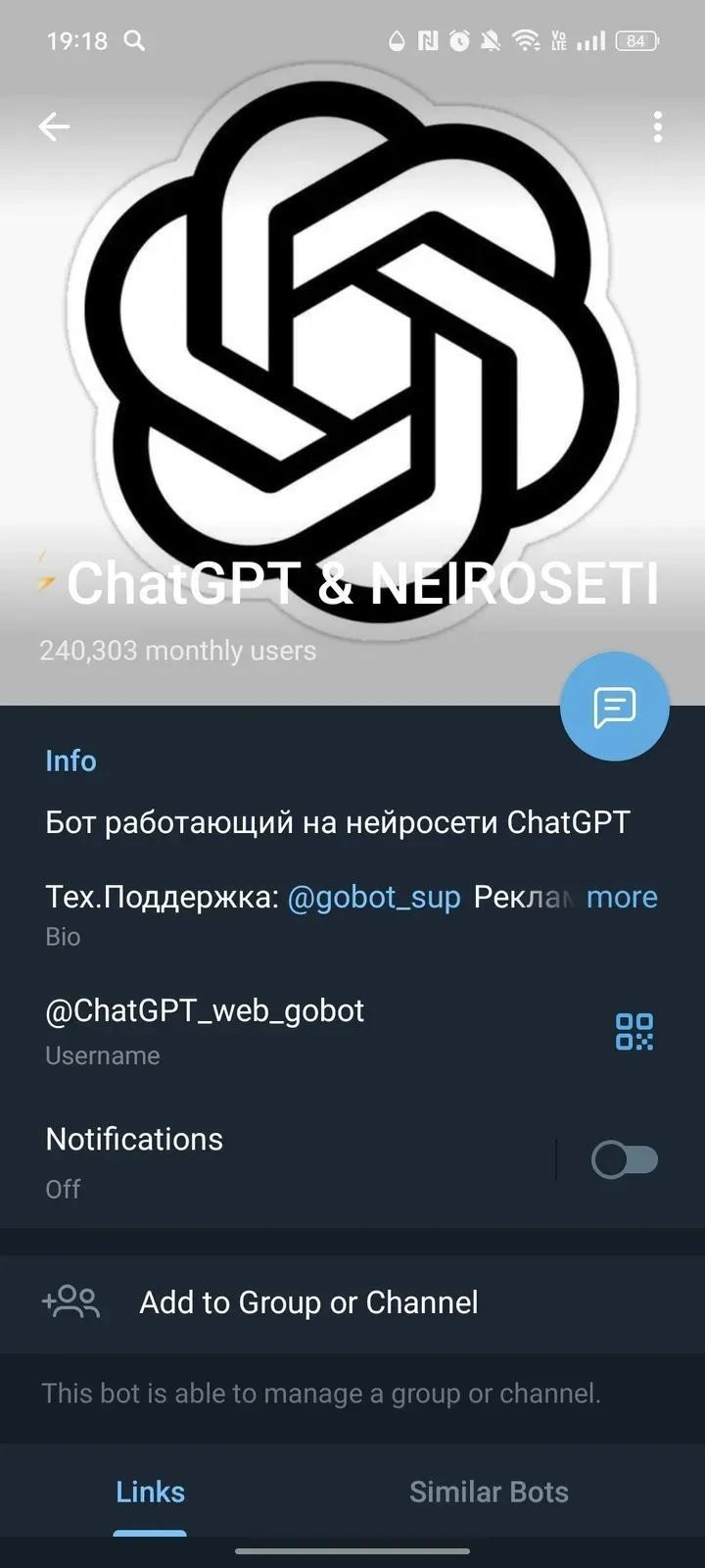 Working link to @chatgpt_web_gobot on Telegram. Currently, this bot has 108 286 monthly active users. If the app is not working or the description seems incorrect, let us know.
