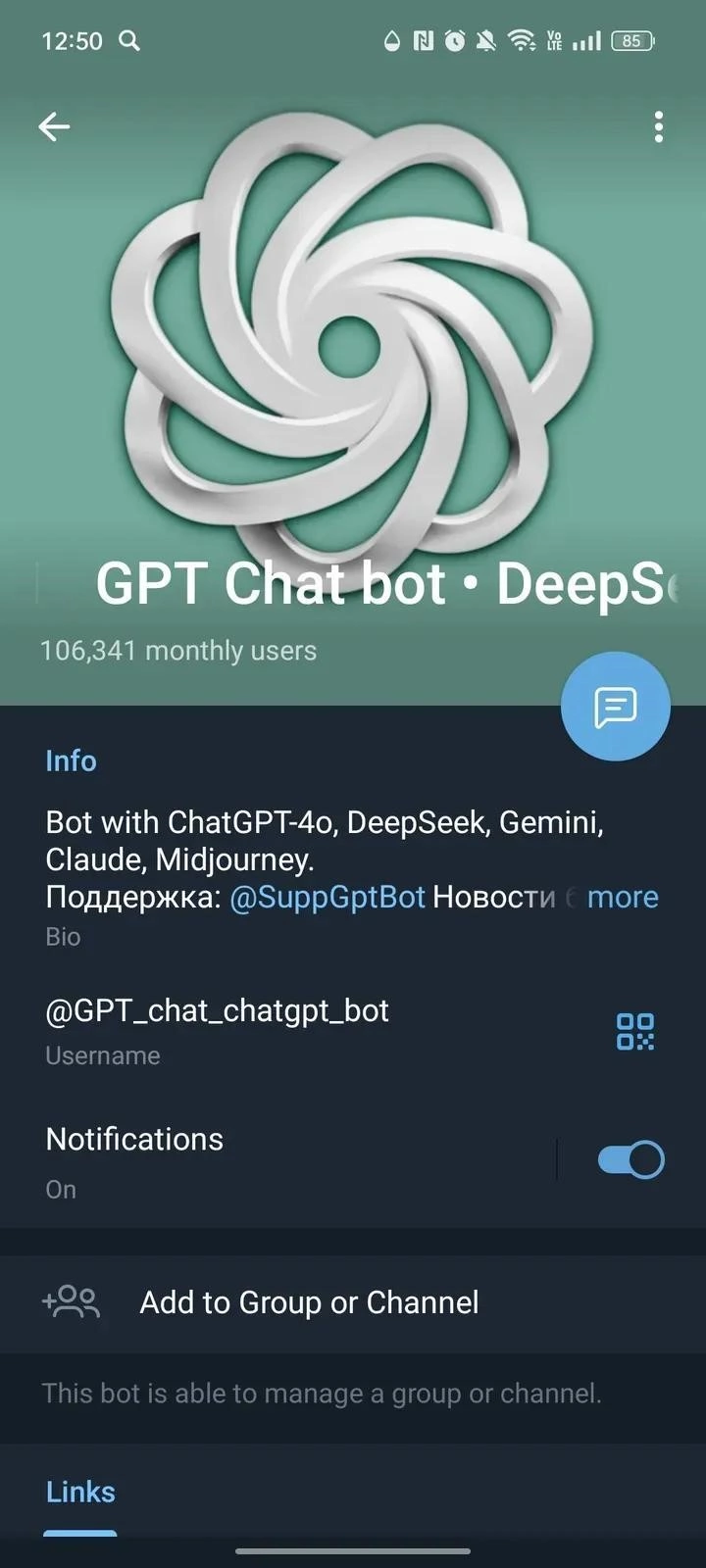 Working link to GPT Chat (@gpt_chat_chatgpt_bot) on Telegram. Currently, this bot has 75 128 monthly active users. If the app is not working or the description seems incorrect, let us know.