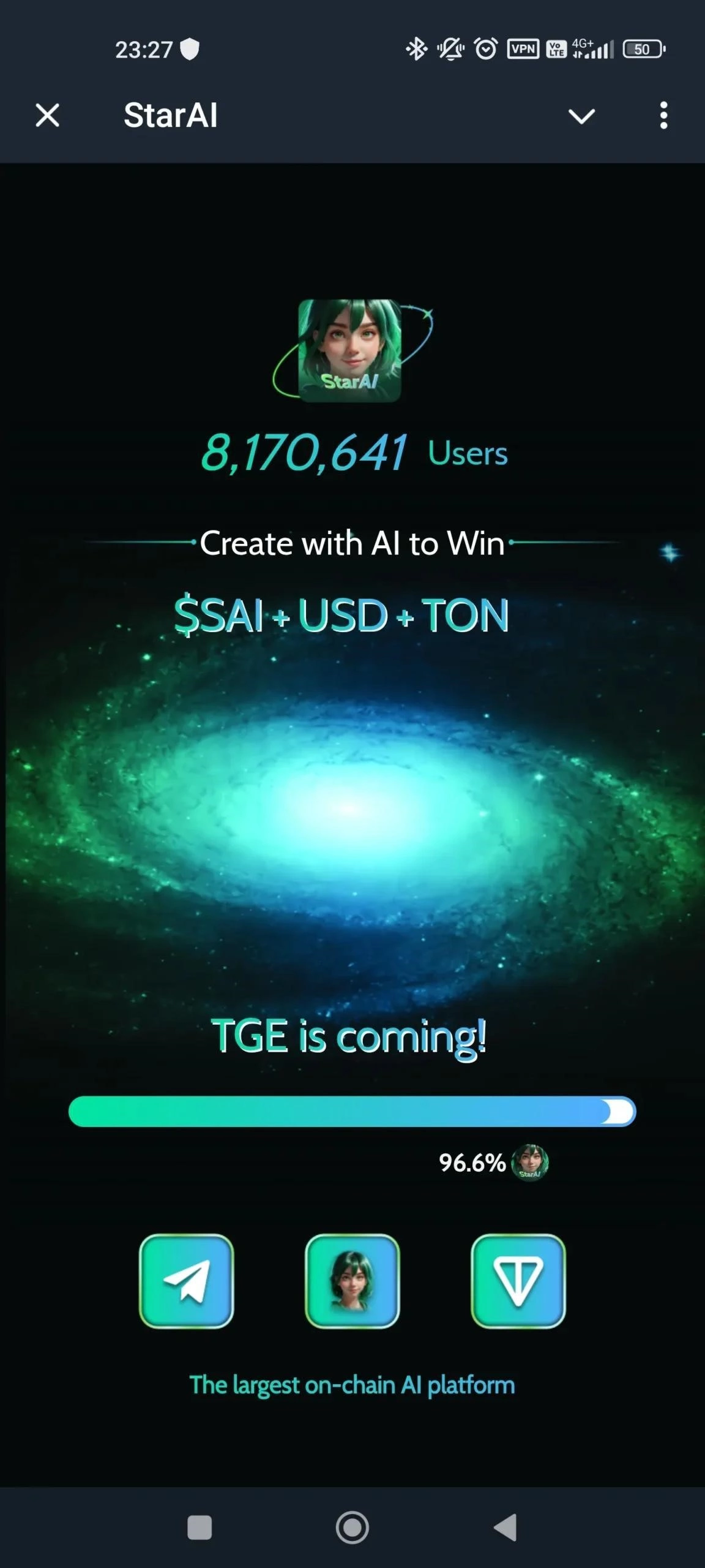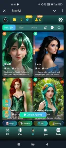 StarAI blends AI character chats, voice interactions, and light game mechanics into a single experience where activity can unlock platform rewards. Players create or choose avatars, build relationships through dialogue, and challenge others in quick card duels to progress and accumulate in-app assets.