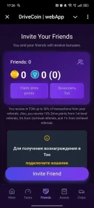 Working link to DriveCoin | webApp on Telegram. The number of active users is not disclosed. If the app is not working or the description seems incorrect, let us know.