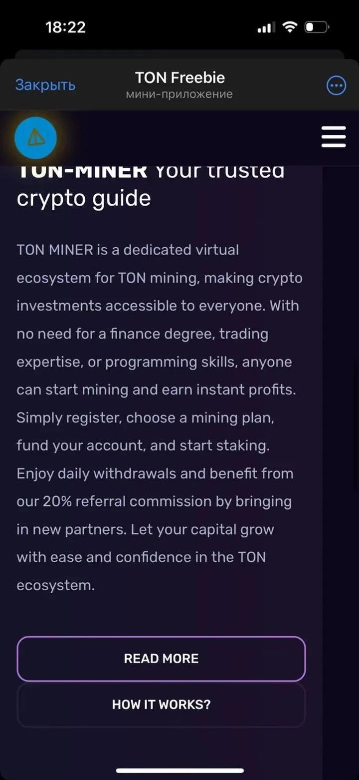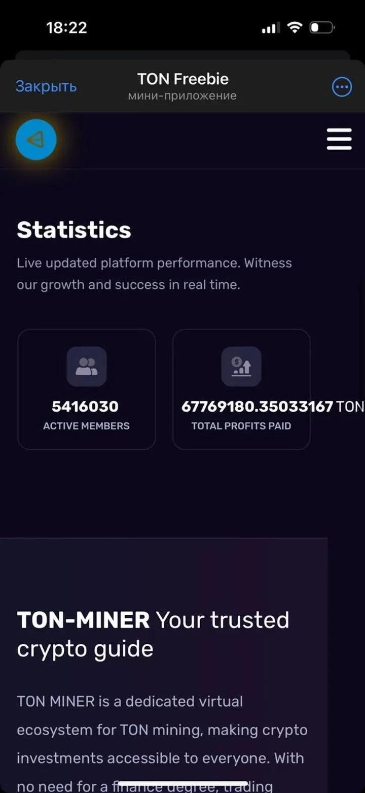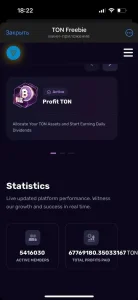 Working link to TON Freebie on Telegram. The number of active users is not disclosed. If the app is not working or the description seems incorrect, let us know.