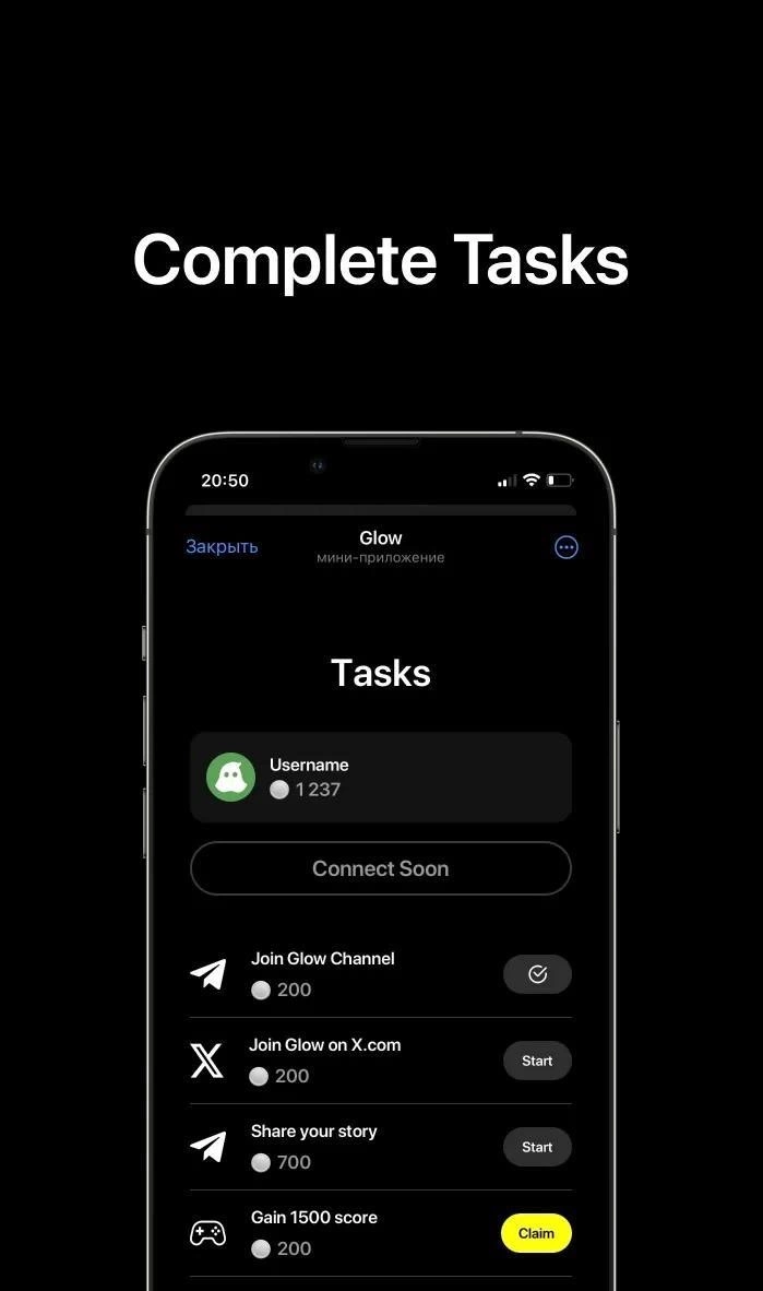 Glow - privacy-focused mini-app that combines secure messaging with interactive mini-games. Its design prioritizes confidentiality.