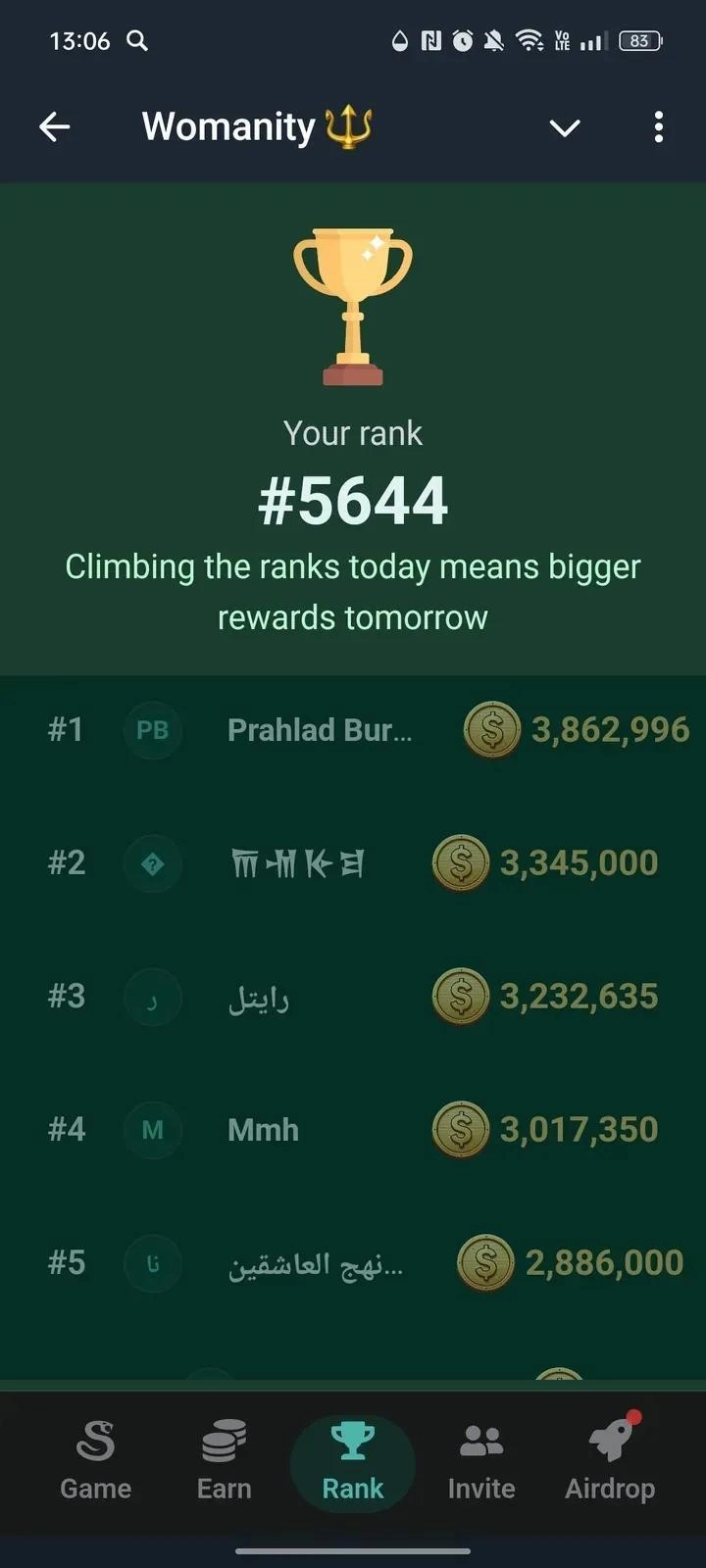 Working link to Womanity 🔱 on Telegram. The number of active users is not disclosed. If the app is not working or the description seems incorrect, let us know.