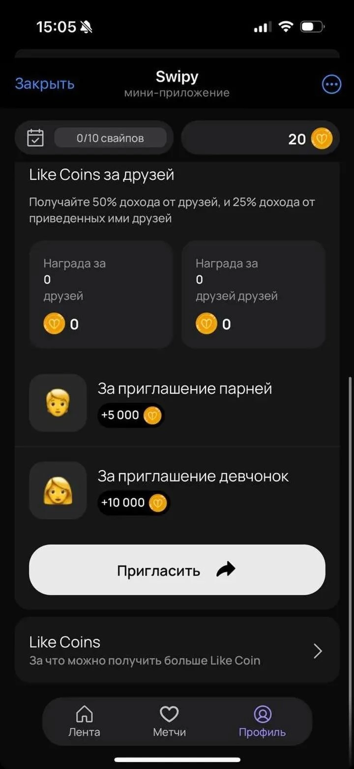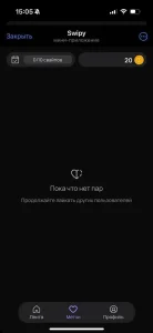 Swipy - dating service with integrated crypto rewards that combines traditional matchmaking with blockchain incentives. The platform allows users to interact, connect with new people, and receive bonuses for activity, creating a more engaging experience than standard dating solutions.