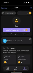 Working link to Swipy on Telegram. The number of active users is not disclosed. If the app is not working or the description seems incorrect, let us know.