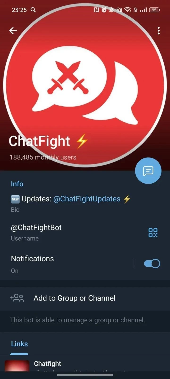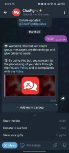 Working link to ChatFight ⚡️ on Telegram. Currently, this bot has 239 002 monthly active users. If the app is not working or the description seems incorrect, let us know.