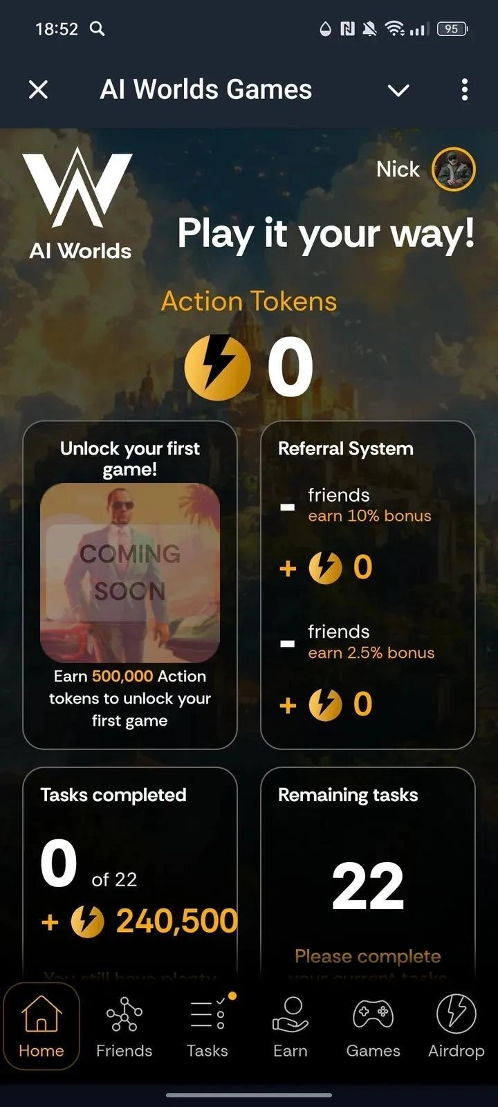 Working link to AI Worlds Games on Telegram. The number of active users is not disclosed. If the app is not working or the description seems incorrect, let us know.