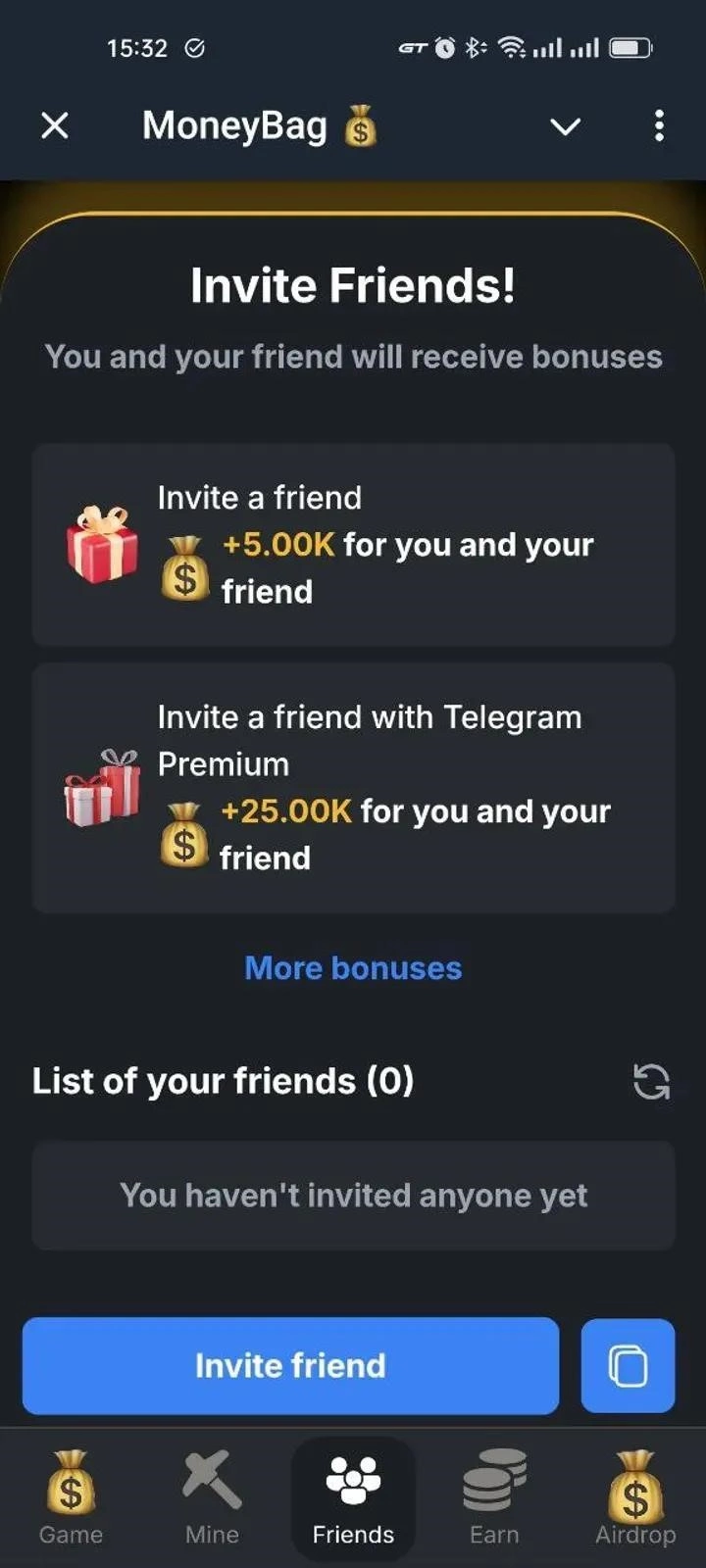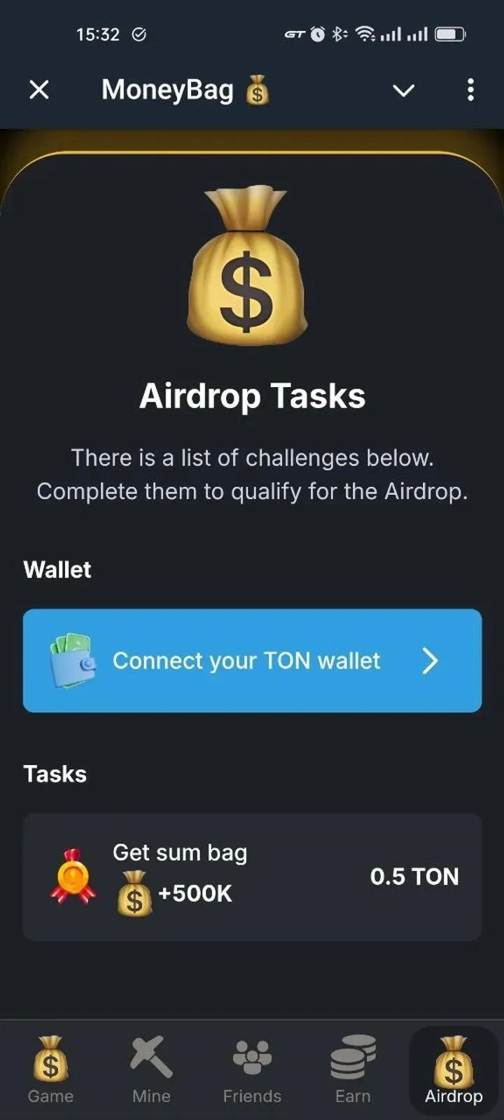 Working link to MoneyBag 💰 on Telegram. The number of active users is not disclosed. If the app is not working or the description seems incorrect, let us know.