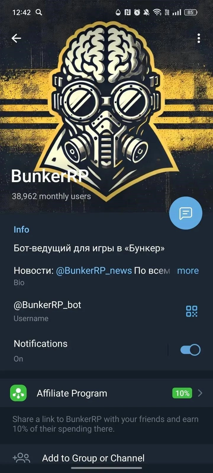 Working link to BunkerRP on Telegram. Currently, this bot has 93 490 monthly active users. If the app is not working or the description seems incorrect, let us know.