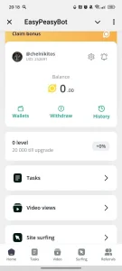 ToolsEasyPeasyBot - micro-earning tool designed for those who want to quickly collect digital rewards and easily convert them into real payouts. The bot automates simple tasks and provides users with a streamlined process of accumulating small amounts of in-app currency that can later be withdrawn. Its primary focus is on speed, accessibility, and transparency.